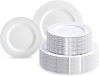 " OCCASIONS " 240 Plates Pack,(120 Guests) Extra Heavyweight Vintage Wedding Disposable/Reusable Plastic Plates 120x11'' Dinner + 120x8.25'' Salad/Dessert Plate (Chateau White) Sale