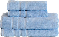 Mosobam Luxury Turkish 4pc Towel Set 30X58 16X30 Allure Blue 700 GSM Bamboo Viscose & Aegean Turkish Combed Cotton
