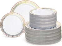 " OCCASIONS " 240 Plates Pack,(120 Guests) Premium Wedding Party Disposable Plastic Plates Set -120 x 10.25'' Dinner + 120 x 7.5'' Salad/Dessert (Royal in White/Blush & Gold)