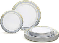 " OCCASIONS " 240 Plates Pack,(120 Guests) Premium Wedding Party Disposable Plastic Plates Set -120 x 10.25'' Dinner + 120 x 7.5'' Salad/Dessert (Scalloped in White/Blue & Gold)