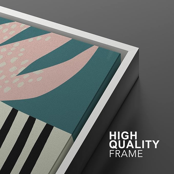 MUDECOR Framed Canvas Print Wall Art Jungle Cheetahs with Tropical Monstera Leaves Abstract Shapes Illustrations Modern Bohemian Nature Colorful for Living Room, Bedroom, Office - 16"x24"x2 White