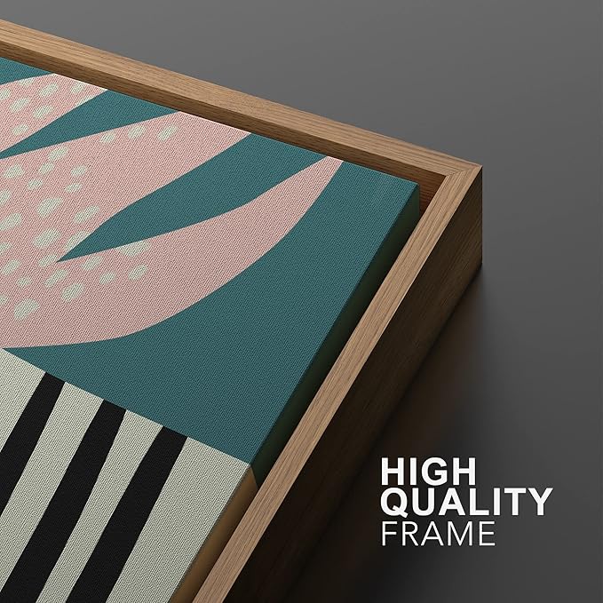 MUDECOR Framed Canvas Print Wall Art Jungle Cheetahs with Tropical Monstera Leaves Abstract Shapes Illustrations Modern Bohemian Nature Colorful for Living Room, Bedroom, Office - 24"x36"x2 Natural