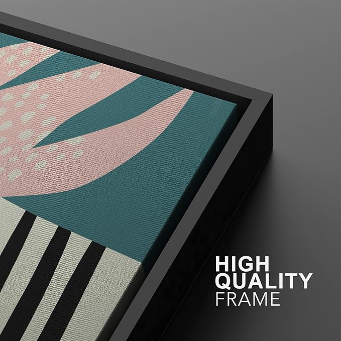 MUDECOR Framed Canvas Print Wall Art Jungle Cheetahs with Tropical Monstera Leaves Abstract Shapes Illustrations Modern Bohemian Nature Colorful for Living Room, Bedroom, Office - 16"x24"x2 Black