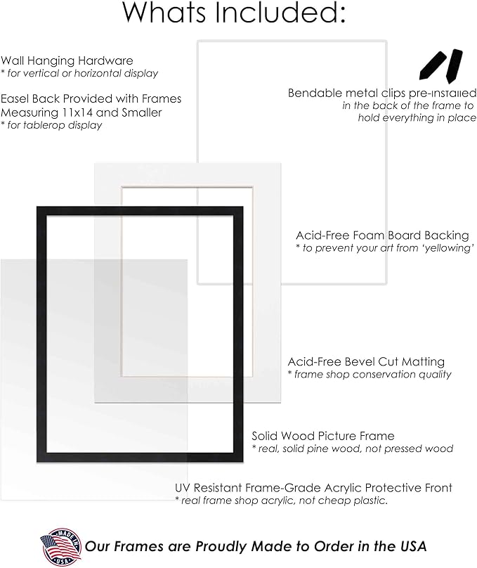 11.5x17 Frame with Mat - Black 14x19 Frame Wood Made to Display Print or Poster Measuring 11.5 x 17 Inches with White Photo Mat