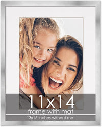 11x14 Frame with Mat - Silver 13x16 Frame Wood Made to Display Print or Poster Measuring 11 x 14 Inches with White Photo Mat