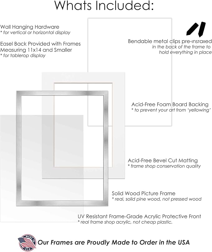 14x14 Frame with Mat - Silver 17x17 Frame Wood Made to Display Print or Poster Measuring 14 x 14 Inches with White Photo Mat