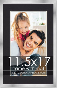 11.5x17 Frame with Mat - Silver 14x19 Frame Wood Made to Display Print or Poster Measuring 11.5 x 17 Inches with Black Photo Mat