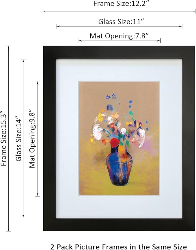 11x14 Picture Frame Set of 2 Made of Solid Wood Photo Frames with Real Glass for Pictures 8x10 with Mat or 11x14 Without Mat, Wall Mounting or Tabletop display Photo Frames in Black Sale