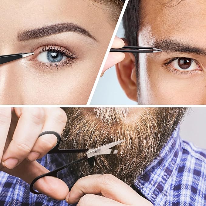 MORGLES Tweezers Set and Nail Clippers, 9 Pcs Stainless Steel Tweezers Kit for Men Professional Manicure Set for Men Grooming Kit with Leather Travel Case