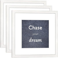 12x12 White Picture Frame Set of 3 for Pictures 8x8 with Mat or 12x12 Without Mat,Wall or Tabletop Gallery Photo Frames with Real Glass Sale