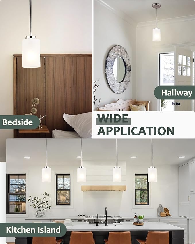 1-Light Mini Pendant Light Fixtures, Industrial Chandelier Hanging Ceiling Light with Opal White Shades, Adjustable Height, Brushed Nickel Pendant Lighting for Kitchen Bedroom Hallway, 3 Pack Sale
