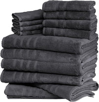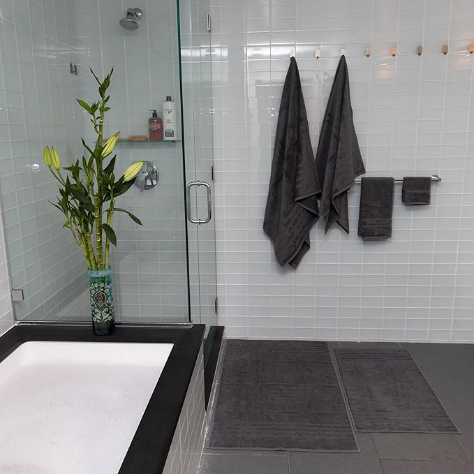 Mosobam Luxury Turkish 14pc XL Deluxe Bath Bundle Body Hand Face Towel and Mat Charcoal Gray (Dark Grey) 700 GSM & 1000 GSM Bamboo Viscose & Aegean Turkish Combed Cotton