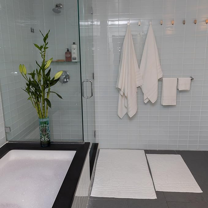 Mosobam Luxury Turkish 14pc XL Deluxe Bath Bundle Body Hand Face Towel and Mat White 700 GSM & 1000 GSM Bamboo Viscose & Aegean Turkish Combed Cotton