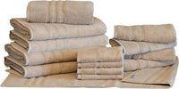 Mosobam Luxury Turkish 14pc Deluxe Bath Bundle Body Hand Face Towel and Mat Light Taupe 700 GSM & 1000 GSM Bamboo Viscose & Aegean Turkish Combed Cotton
