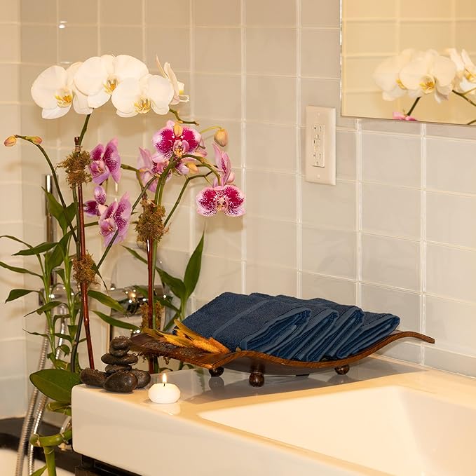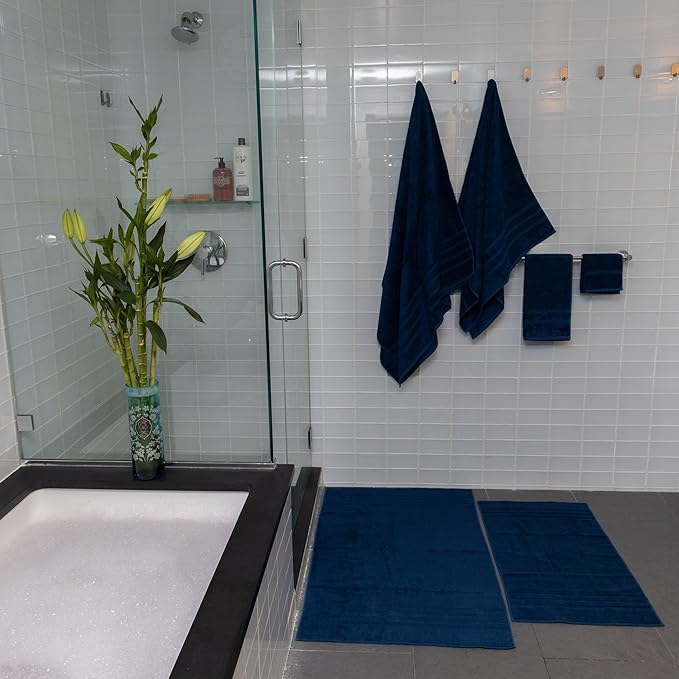 Mosobam Luxury Turkish 14pc Deluxe Bath Bundle Body Hand Face Towel and Mat Navy Blue 700 GSM & 1000 GSM Bamboo Viscose & Aegean Turkish Combed Cotton