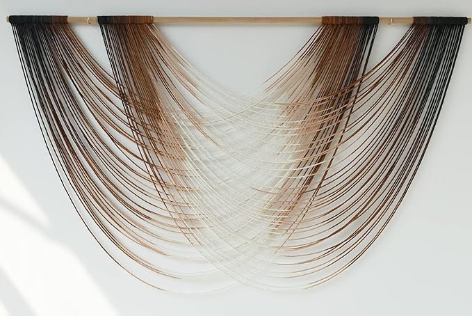 Flber Macrame Wall Hanging Dip Dye Brown Boho Wall Decor Yarn Tapestry Modern Living Room Bedroom Home Wall Decor 57" W x 35" L