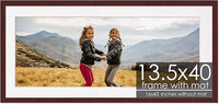 13.5x40 Frame with Mat - Brown 16x43 Frame Wood Made to Display Print or Poster Measuring 13.5 x 40 Inches with White Photo Mat