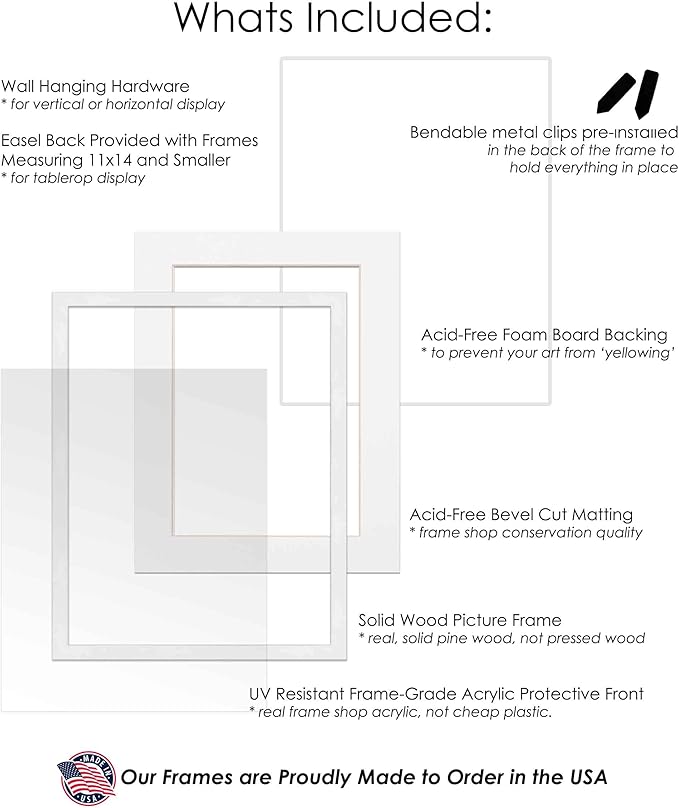 12x22 Frame with Mat - White 14x24 Frame Wood Made to Display Print or Poster Measuring 12 x 22 Inches with White Photo Mat