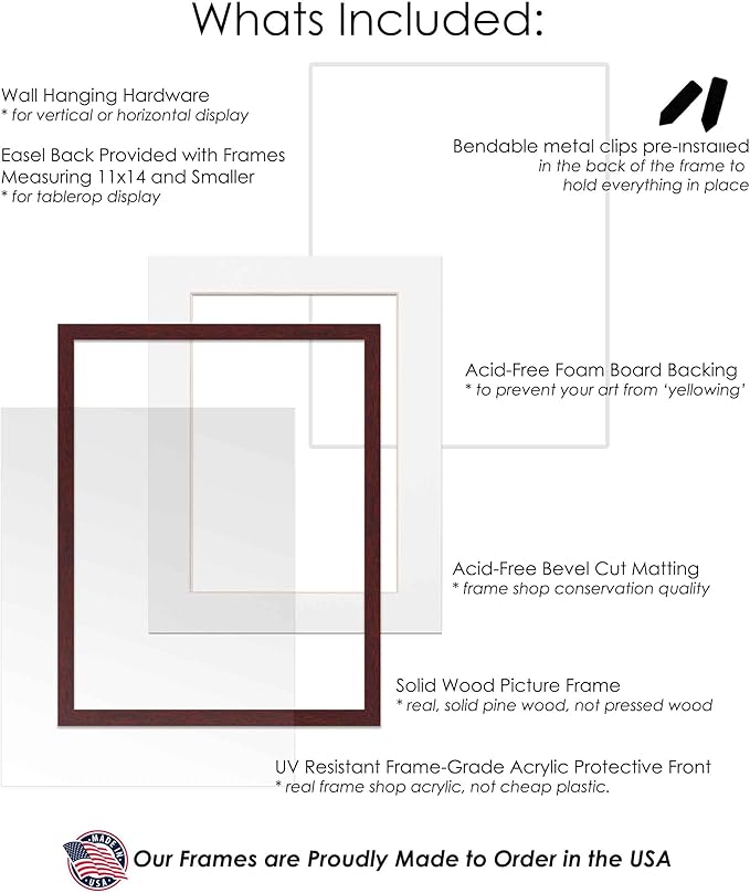 13x19 Frame with Mat - Brown 15x21 Frame Wood Made to Display Print or Poster Measuring 13 x 19 Inches with White Photo Mat