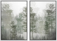 MUDECOR Framed Canvas Print Wall Art Pastel Watercolor Misty Fog Forest Tree Wilderness Nature Illustrations Modern Art Decorative Calm/Relax Multicolor Rustic Minimal for Bedroom - 16"x24"x2 White