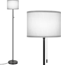 FOLKSMATE Floor Lamp for Living Room, Modern LED Simple Standing Lamp, Minimalist Tall Light for Bedroom, Office, Kids Room, Reading, Black Pole With Grey Shade, Without Bulb