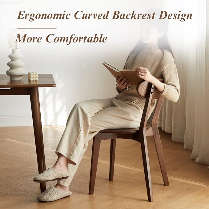 100% Solid Oak Wood Dining Chairs Set of 4 - Practical Kitchen Chairs - Wood Dining Chair for Dining Room, Kitchen (Walnut)