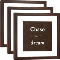 11x11 Picture Frame Set of 3 with Real Glass for Pictures 8x8 with Mat or 11x11 Without Mat, Wall Gallery or Tabletop display Photo Frames in Walnut