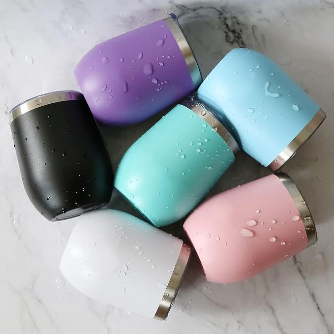 12oz Wine Tumbler with Lid With straw Stainless Steel Wine Tumbler Cups Double Wall Vacuum Insulated Travel Mugs Stemless Cup 12 Pack(Black