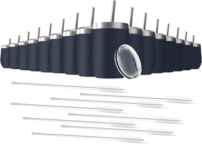 12oz Wine Tumbler with Lid With straw Stainless Steel Wine Tumbler Cups Double Wall Vacuum Insulated Travel Mugs Stemless Cup 16 Pack Sale