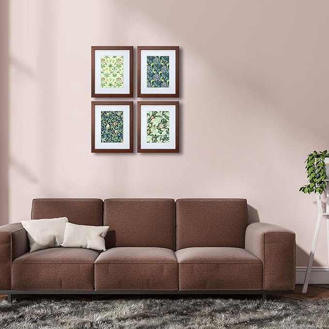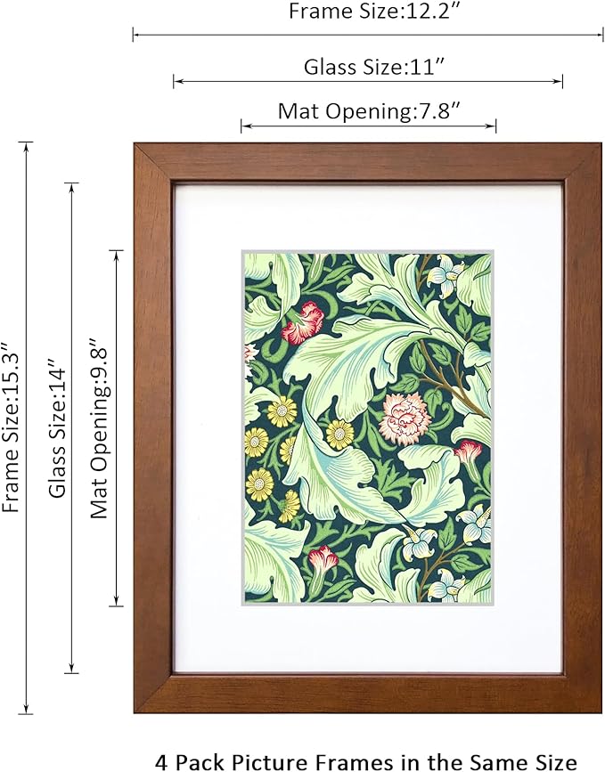 11x14 Picture Frame Set of 4 Made of Solid Wood with Real Glass for Pictures 8x10 with Mat or 11x14 Without Mat, Wall Mount or Tabletop Gallery Photo Frames, Brown Sale