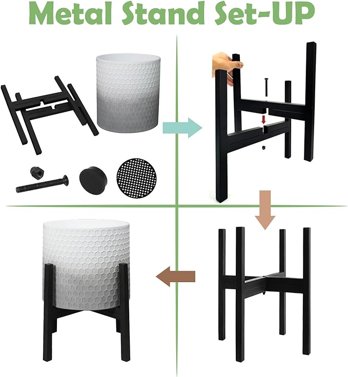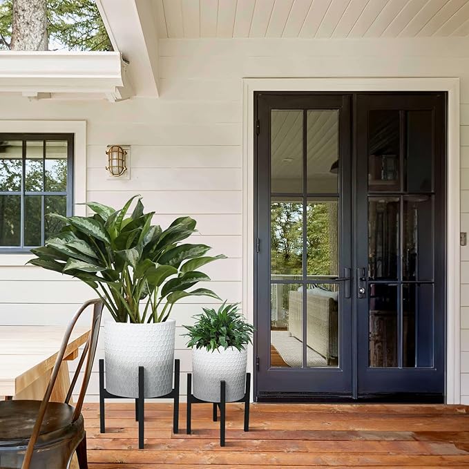 10 & 12 Inches Planters with Metal Sand for Indoor Plants Set of 2,Decorative Plant Pots with Holder, Outdoor Flower Pots with Legs, Modern Garden Pot with Drainage Holes for Snake Plant, House plants Sale