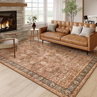 Morebes Vintage Living Room Rug,Washable Large Area Rug 6x9 Non Slip,Distressed Soft Floral Dorm Boho Rugs,Indoor Accent Floor Carpet for Nursery Kitchen Coffee Table Dining,Brown