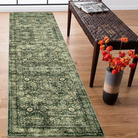Morebes Vintage Kitchen Runner Rugs Non Skid Washable, Floral Boho 2x8 Runner Rug, Non Shedding Runner Rugs for Hallway Indoor Floor Carpet Runner for Laundry Room Bedroom, Grayish Green
