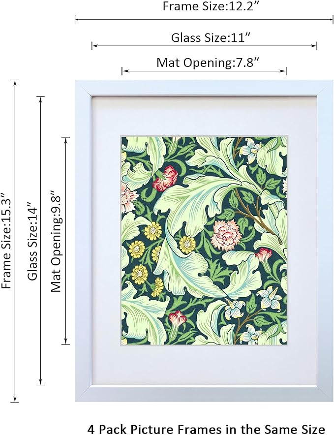 11x14 Picture Frame Set of 4 Made of Solid Wood Photo Frames with Real Glass for Pictures 8x10 with Mat or 11x14 Without Mat, Wall Mounting or Tabletop display Photo Frames in White
