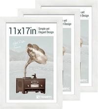 11x17 Picture Frame 3 Pack - White Woodgrain, Solid Wood & HD Tempered Glass, Wall Gallery Poster Frame Sale
