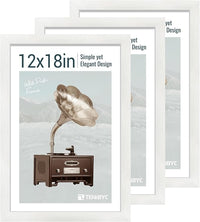 12x18 Poster Frame Set - 3 Pack, Textured White Solid Wood with HD Tempered Glass, Wall Gallery Picture Photo Frame