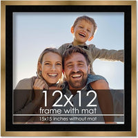 12x12 Frame with Mat - Bronze 15x15 Frame Wood Made to Display Print or Poster Measuring 12 x 12 Inches with Black Photo Mat