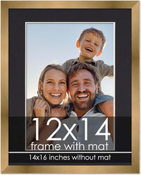 12x14 Frame with Mat - Bronze 14x16 Frame Wood Made to Display Print or Poster Measuring 12 x 14 Inches with Black Photo Mat
