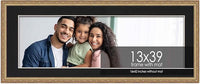 13x39 Frame with Mat - Antique Gold 16x42 Frame Wood Made to Display Print or Poster Measuring 13 x 39 Inches with Black Photo Mat