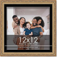 12x12 Frame with Mat - Antique Gold 15x15 Frame Wood Made to Display Print or Poster Measuring 12 x 12 Inches with Black Photo Mat