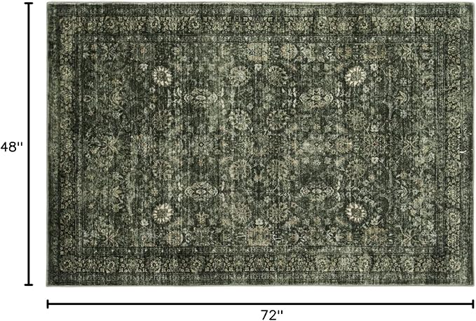 Morebes Washable Green Area Rugs 4x6, Vintage Boho Rugs for Bedroom, Soft Distressed Indoor Floor Non-Slip Non-Shedding Living Room Throw Carpet for Kitchen Dining Playroom Entryway