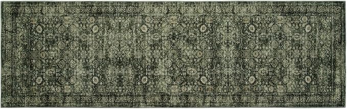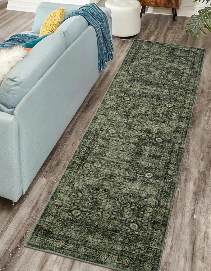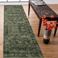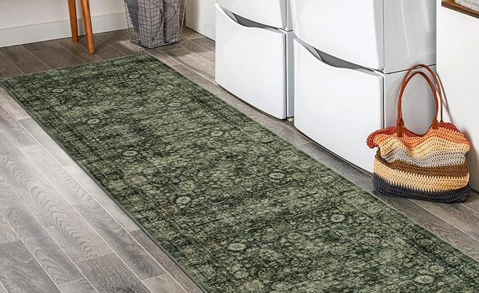 Morebes Washable Dark Green Runner Rug 2x8, Vintage Boho Runners for Hallways Non Slip, Soft Floral Indoor Floor Throw Carpet for Kitchen Laundry Room Bedroom Bathroom Living Entryway