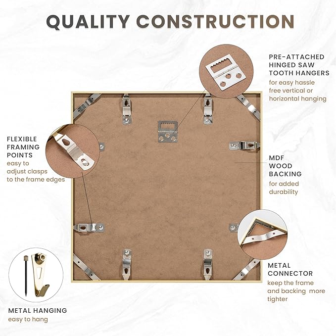 12x12 Gold Picture Frame, 12 x 12 Metal Frame Set of 3, Modern Gold Aluminum Frames with Tempered Glass, Matted to 10x10, Square 12 by 12 Wall Gallery Frame Set