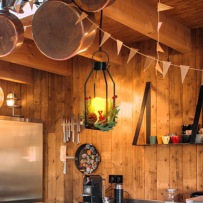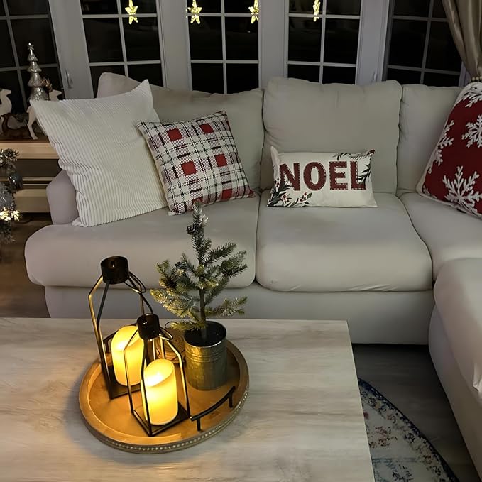 Modern Farmhouse Lantern Decor,16'' 12'' 2 Pcs Metal Candle Lanterns with Flameless Candles Black Decorative Lantern for Front Porch Covered Patio Dining Table Entryway Table Wedding Home Decor