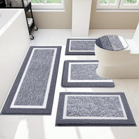 Pauwer Bathroom Rugs Set 5 Piece, Plush Absorbent Microfiber Bath Mats for Bathroom, Non Slip Washable Bath Rug Set with U Shaped Contour Toilet Rugs, Shower Rug and Toilet Lid Cover, Dark Grey