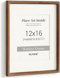 12x16 Picture Frame, USA-Sourced Natural Walnut Wood Photo Frame with Tempered Glass, Handcrafted Rounded Corner 12 x 16 Wooden Frame Matted to 8.5x11 Photos, Horizontal or Vertical Wall Mounting
