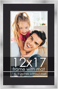 12x17 Frame - Silver 14x19 Frame Wood Made to Display Print or Poster Measuring 12 x 17 Inches with Black Photo Mat