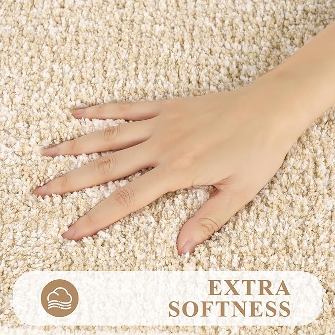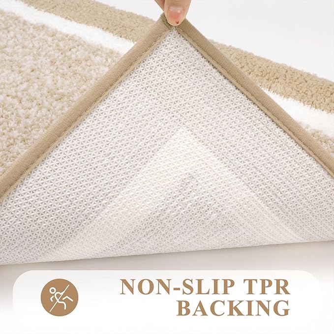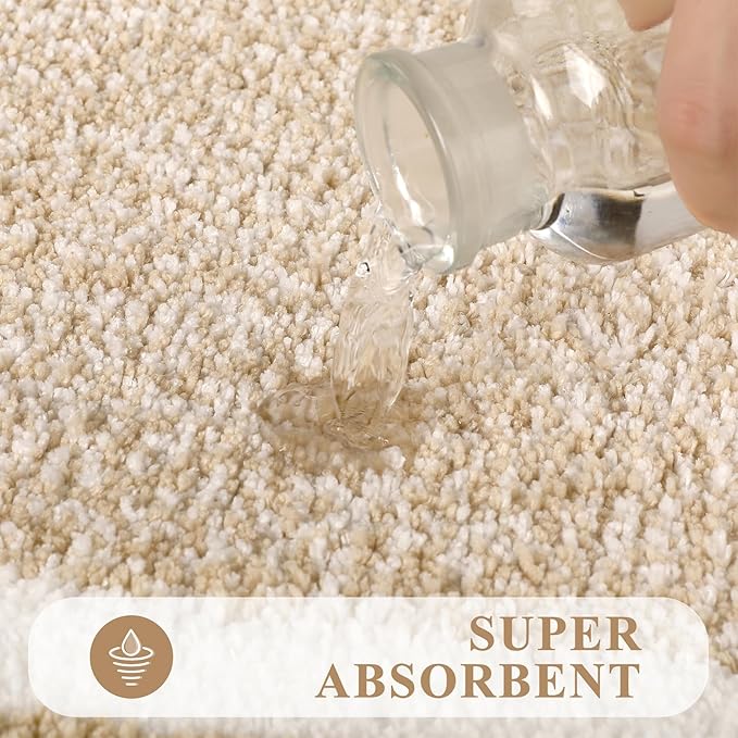 Pauwer Bathroom Rugs Set 5 Piece, Plush Absorbent Microfiber Bath Mats for Bathroom, Non Slip Washable Bath Rug Set with U Shaped Contour Toilet Rugs, Shower Rug and Toilet Lid Cover, Beige