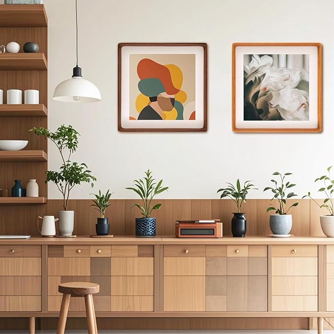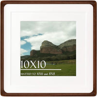 10x10 Square Picture Frame in Natural Walnut Wood, Solid Wooden Frames matted to 6x6/8x8, Gallery Frames for Wall Mount or Tabletop Display