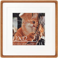 12x12 Square Picture Frame in Natural Teak Wood, Solid Wooden Frames matted to 8x8/10x10, Gallery Frames for Wall Mount or Tabletop Display
